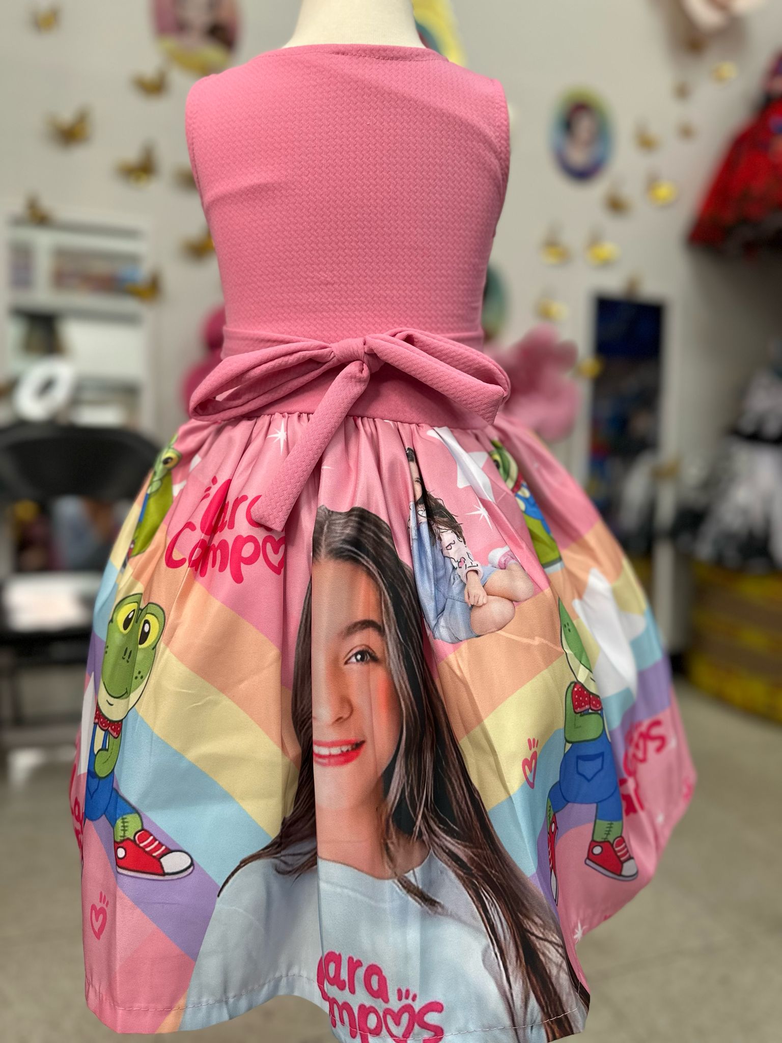 Este tierno vestido está confeccionado completamente a mano por talentosas artesanas mexicanas, quienes cuidan cada detalle con dedicación, cariño y delicadeza. Inspirado en la ternura, simpatía y dulzura de una pequeña estrella de corazón alegre, su diseño refleja frescura, inocencia y mucho encanto.