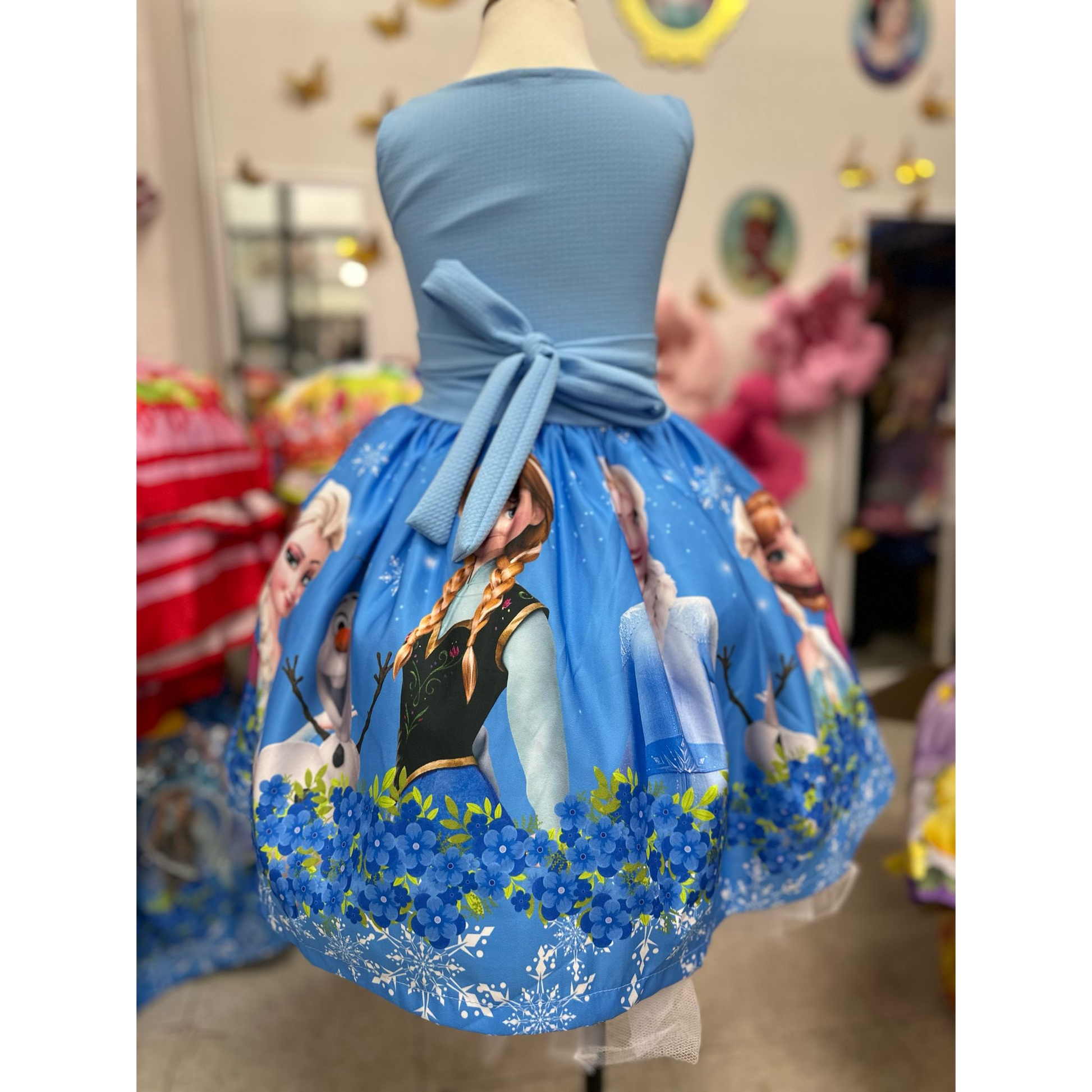 Este encantador vestido está confeccionado completamente a mano por talentosas artesanas mexicanas, cuidando cada detalle con dedicación y ternura. Inspirado en la magia, la fuerza y el lazo inquebrantable entre hermanas, su diseño evoca un mundo de hielo, sueños y aventuras.