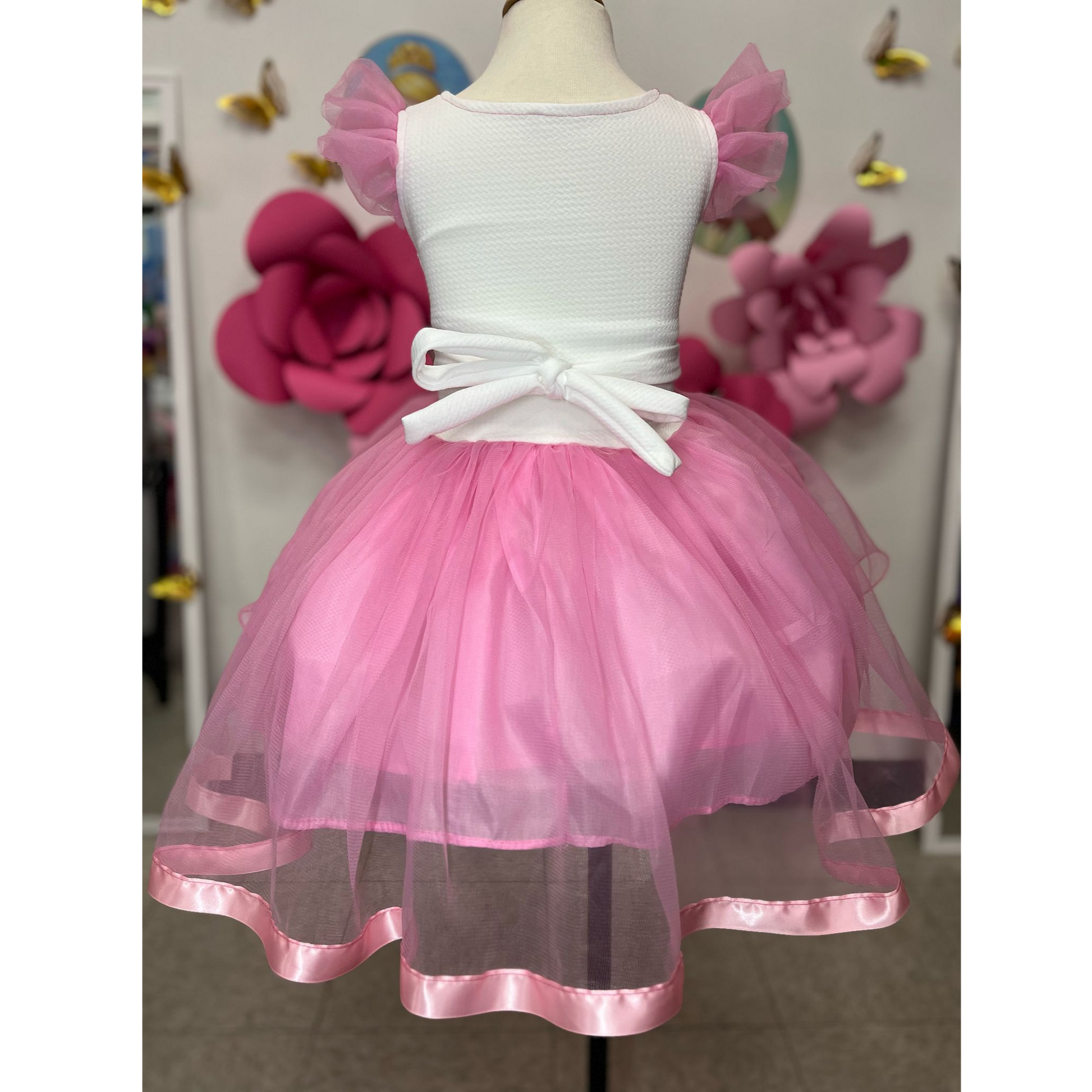 Este tierno vestido está confeccionado completamente a mano por talentosas artesanas mexicanas, cuidando cada detalle con dedicación y mucho amor. Inspirado en una coqueta ratoncita de lazos grandes y corazón alegre, su diseño en tonos vibrantes celebra la dulzura, el juego y la diversión.